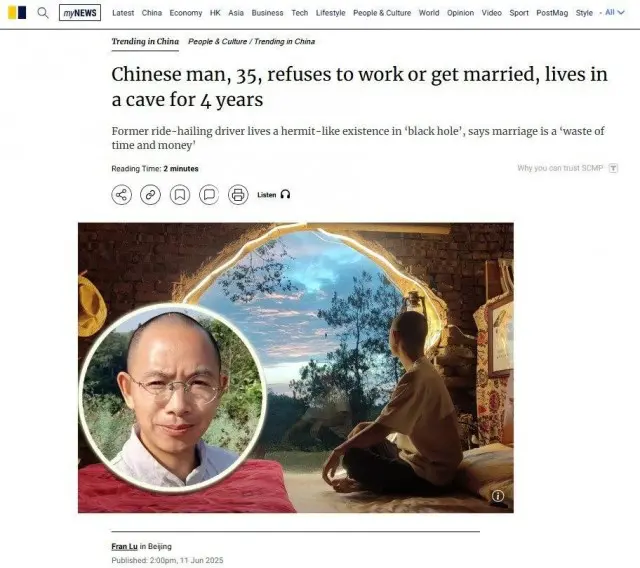 Китаец ушёл жить в пещеру, потому что считает работу и женитьбу бессмысленными вещами - он ведёт отшельнический образ жизни уже четыре года, - South China Morning Post