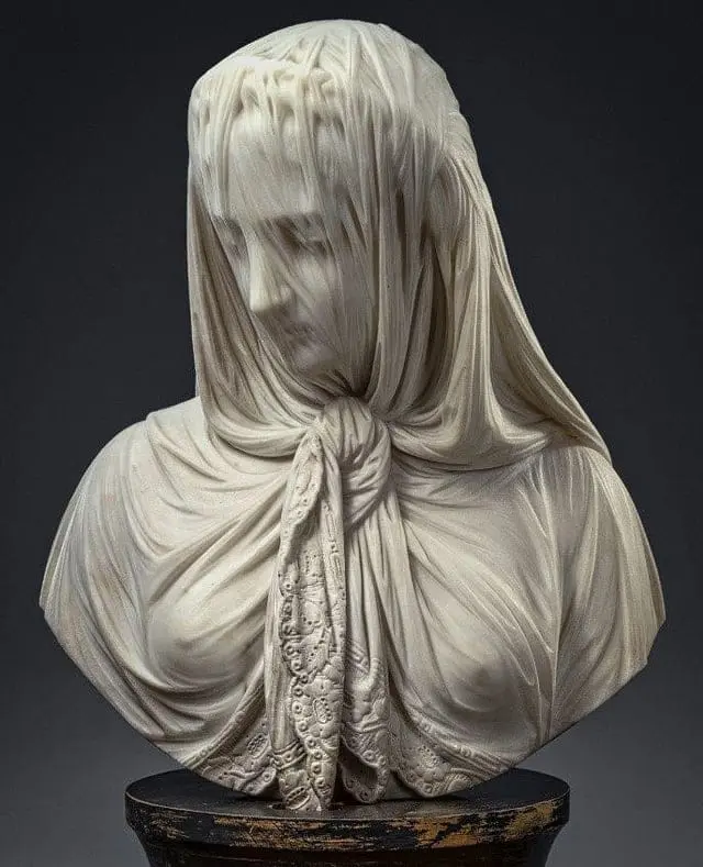 «Женщина под вуалью» — мраморная скульптура, созданная итальянским художником Джованни Баттиста Ломбарди в 1869 году. Подобная реализация складок вуали поверх лица на скульптуре — настоящее искусство.