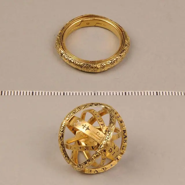 Немецкое кольцо 16 века, которое разворачивается в астрономическую сферу