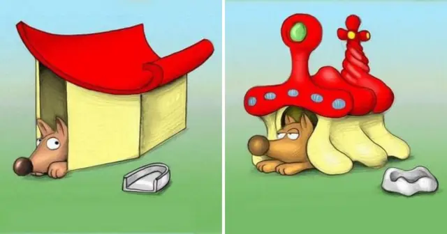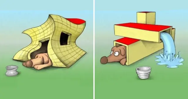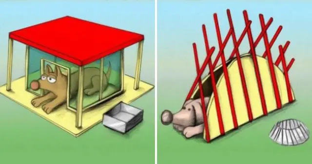 Марко Марилунго — итальянский художник, способный простым языком объяснить тонкости архитектуры. Все, что потребуется, — всего лишь представить собаку, её миску и, конечно же, собачью будку. Эта элементарная конструкция становится идеальным примером, позволяющим наглядно показать архитектурные приемы, используемые известными архитекторами.