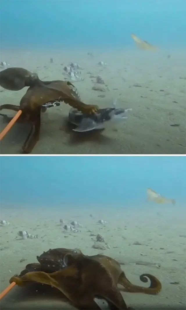 Убедил осьминога обменять пластиковый стаканчик на ракушку