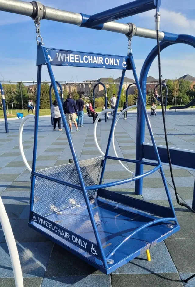 В этом парке есть качели для детей в инвалидных колясках