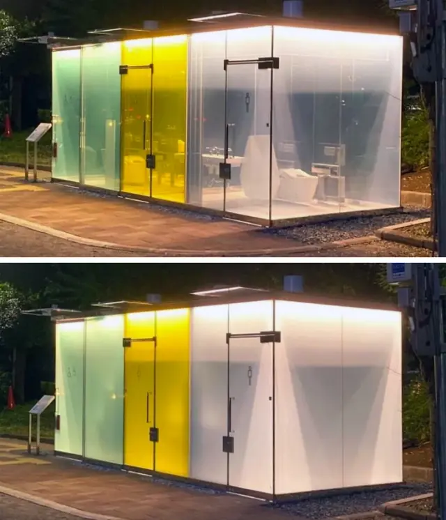 В Токио есть общественные туалеты с прозрачными стенами. А вот как выглядит кабинка, когда человек внутри