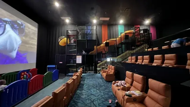В этом кинотеатре есть кинозал с игровой площадкой для детей