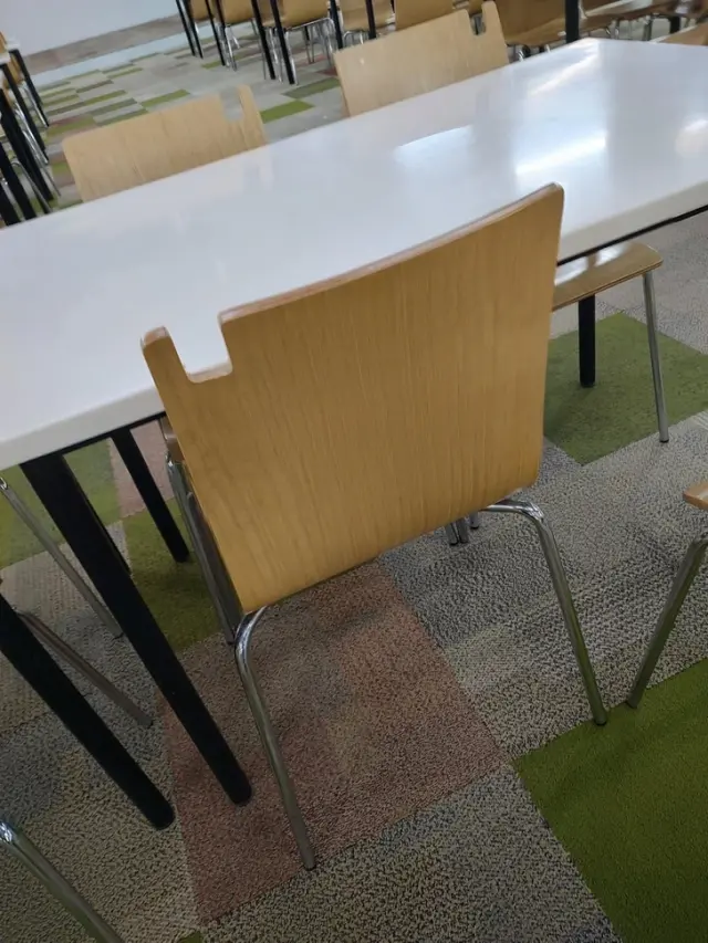 На стульях в столовой есть выемка, чтобы вешать сумки