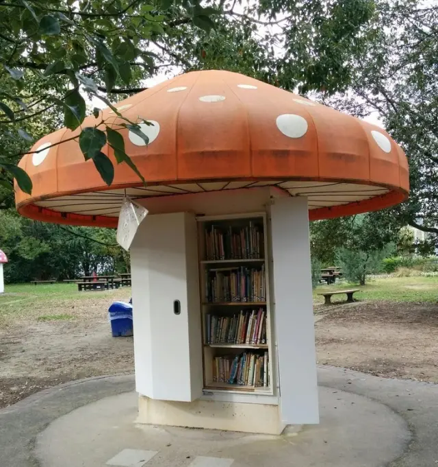 Эти «грибы» в парке — шкафы, полные детских книг