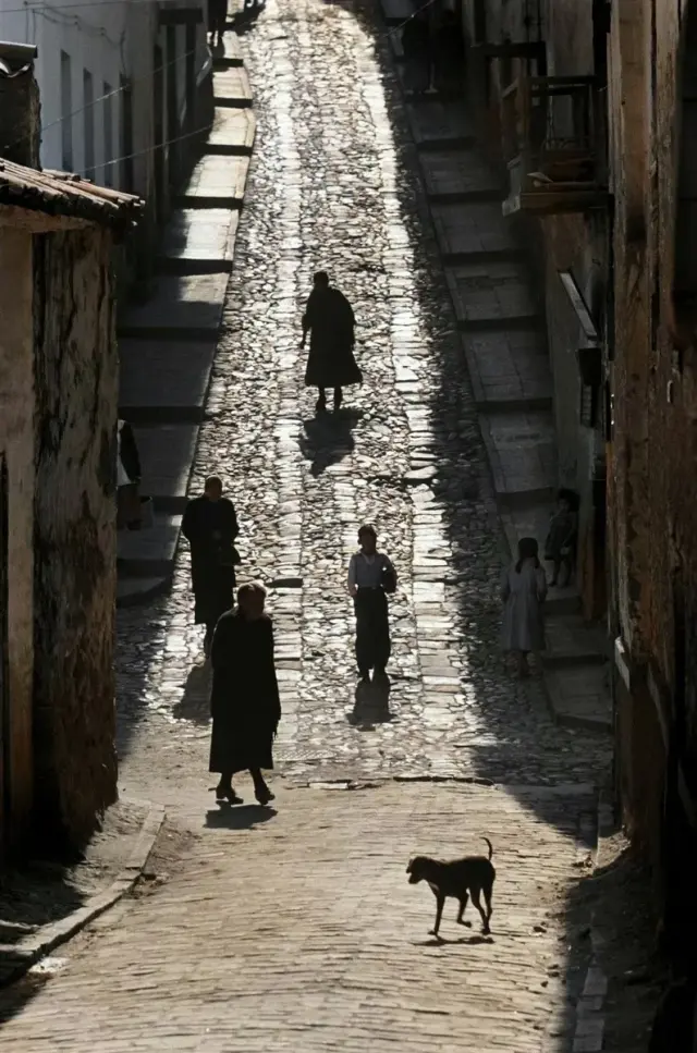 Конная повозка рядом с американским Chevrolet на улицах Эрзурума. Турция, 1973 год.