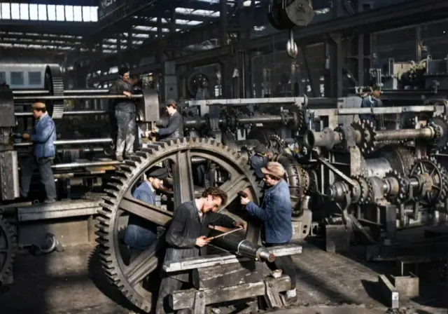 Сборочная линия станкостроительного завода (фабрики) «Иво Лола Рибар» в Железнике, недалеко от Белграда, Сербия, Югославия, середина 1960-х годов.
