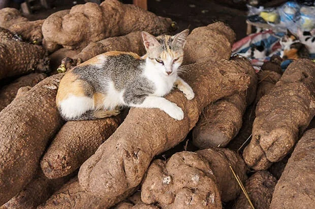 «Это же картошка!» — воскликнет любой, кто увидит ямс. И будет прав, ведь ямс — это тропический аналог картофеля. Однако он отличается от привычного овоща двумя важными особенностями. Во-первых, его клубни содержат яд, который нейтрализуется при термической обработке. Во-вторых, размер клубней может достигать нескольких десятков килограммов. В остальном ямс действительно похож на картофель: он богат крахмалом и имеет слегка сладковатый вкус. Его жарят, тушат, варят, а из муки пекут лепешки и блины.