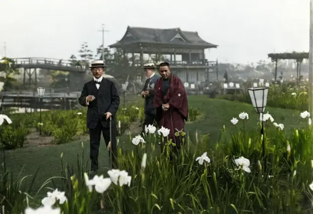 Принц Нарухиса Киташиракава. Япония, 1919 год. (В бордовом халате — сам принц)