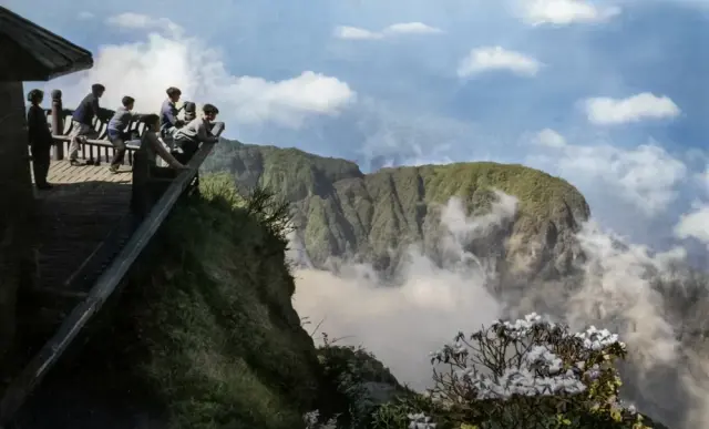Вид на горы из монастыря Спящих облаков на юго-западе Китая, Сычуань, 1962 год.