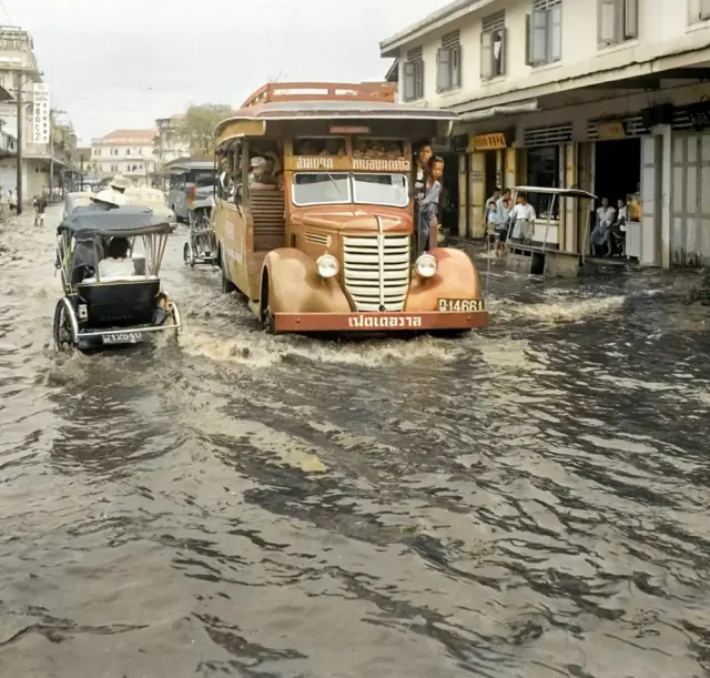 Автобусы на пирсе Сам Яэк-банг крабу. Таиланд, 1950 год.