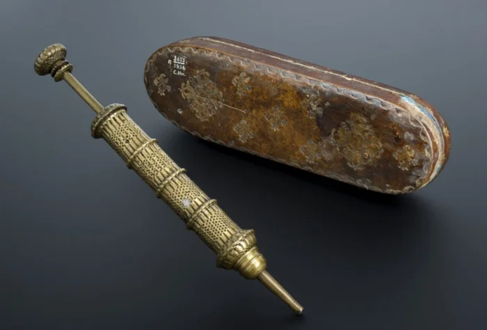 Латунный многоразовый шприц с футляром, 1601-1630-е годы