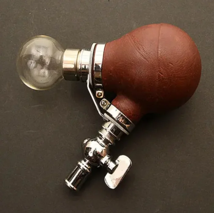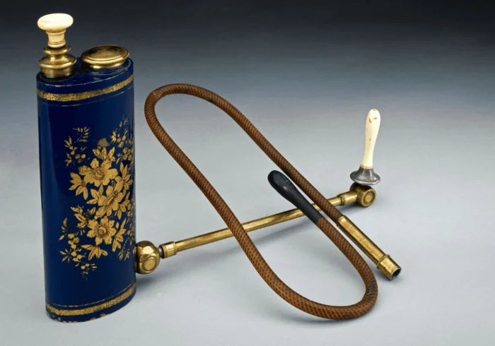 Металлическая поршневая клизма с заменяемыми наконечниками, XIX век