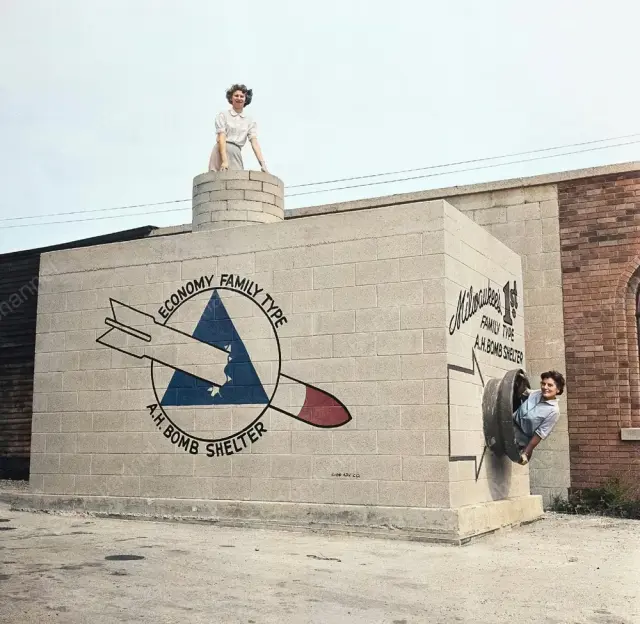 Демонстрация подземного бомбоубежища эконом-класса, которое могло вместить в себя от 8 до 12 человек, США, 1958 год.