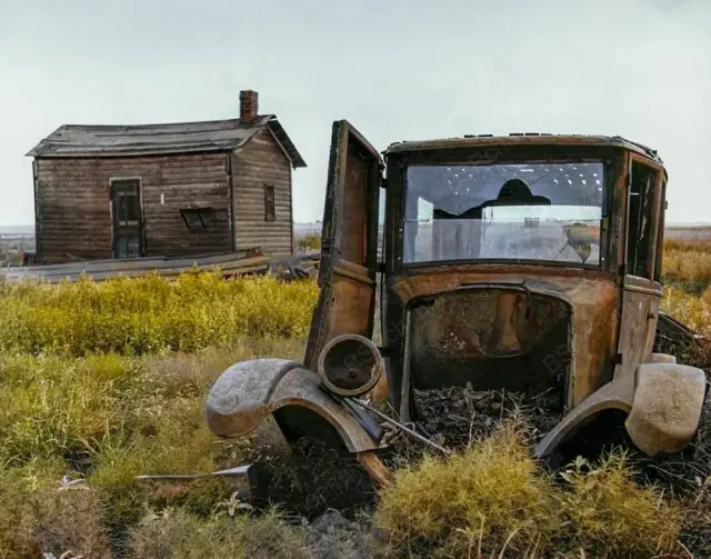 Заброшенная ферма, Оклахома, США, 1942 год. Одним из самых тяжёлых периодов в истории США стала эпоха Пыльных бурь — серия разрушительных засух и песчано-пылевых ураганов, охвативших центральные штаты страны в 1930-х годах.