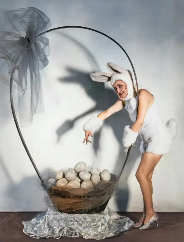 Рекламный портрет актрисы Жанетт Лофф (1906-1942) в костюме пасхального кролика. США, 1930-е.