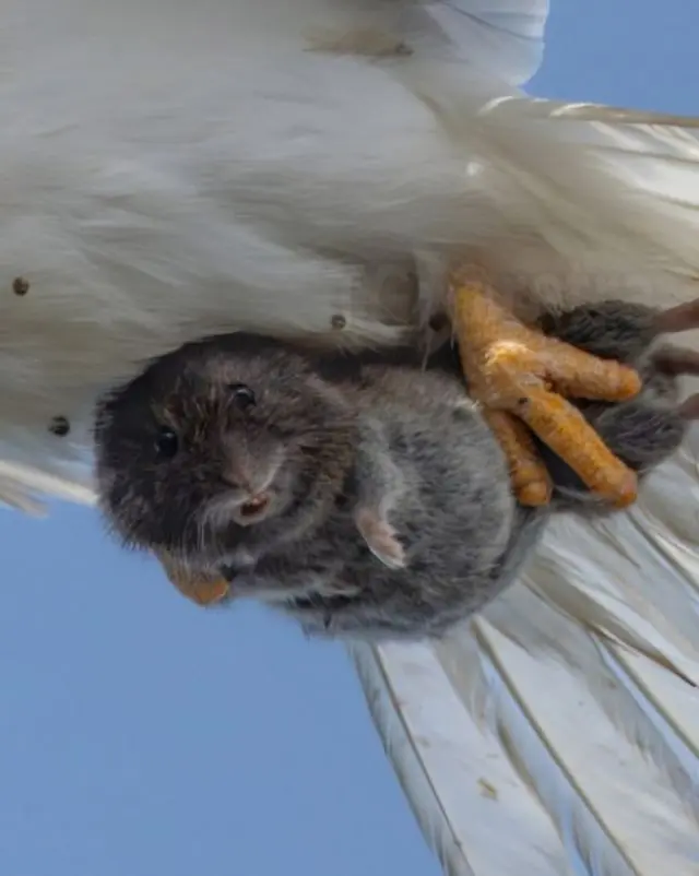 Как говорится, мем смешной, а ситуация страшная. Американскому фотографу удалось заснять уникальный момент — крошечная полёвка в когтях хищника смотрит прямо в объектив фотокамеры. Давайте... просто представим, что птичка показывает новому другу мир сверху.