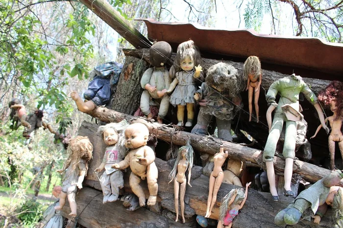 Более 50 лет назад Хулиан Сантана поселился на острове и начал собирать кукол, развешивая их по всему острову. Со временем это место превратилось в жутковатый кукольный лабиринт, который стал одним из необычных мест Мехико.