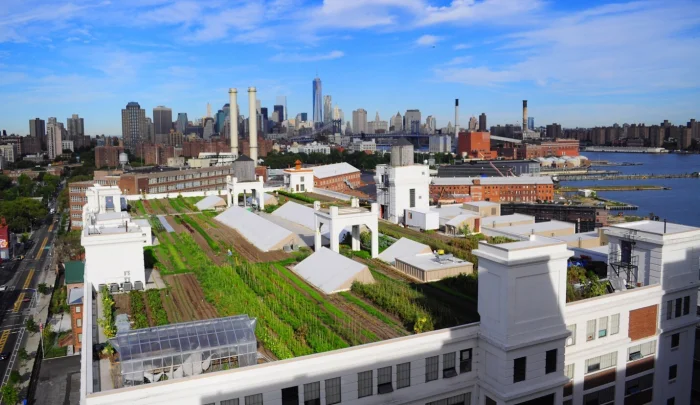 С 2010 года Brooklyn Grange снабжает Нью-Йорк овощами, выращенными на крышах. Основная ферма расположена в Квинсе, а вторая находится в Бруклине, и вместе они занимают около 10 000 м² и производят до 18 000 кг урожая в год.
