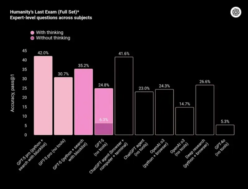 «GPT‑5 объединяет и превосходит предыдущие достижения OpenAI в области передового интеллекта, рассуждения o-серии, функции агентов и работу с высшей математикой <...> GPT‑5 обеспечивает прорыв в точности, скорости, логическом анализе, распознавании контекста, структурированном мышлении и решении проблем. Настоящее волшебство произойдёт, когда компании начнут применять GPT‑5 для разработки новых сценариев использования»
