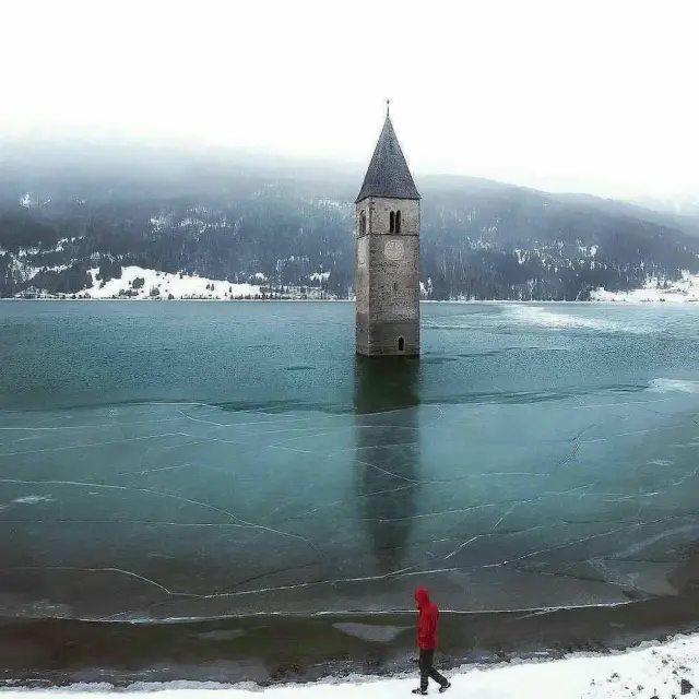 Церковь на озере Решен, Италия