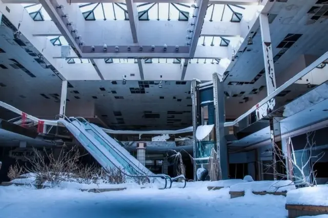 Заброшенный торговый центр JC Penny в Огайо, покрытый снегом