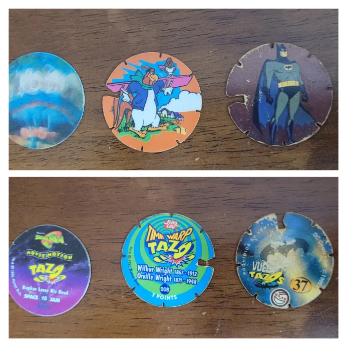 Пластиковые диски с героями мультфильмов. Доставали их из пачки «Lays» или «Cheetos» с трепетом — ведь никогда не знаешь, выпадет ли редкий персонаж. Обменивали на переменах, устраивали «дуэли» и берегли в специальных коробках.
