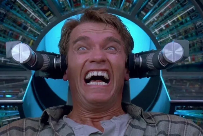 Рабочий с Земли берёт «виртуальный отпуск» на Марс — и просыпает свою прежнюю жизнь супер-агента. То ли реальность, то ли implanted memories: сцены сменяют друг друга как уровни игры — драки в метро, бегство по куполам, кислородная агония. Шварценеггер здесь не просто сила, но и проводник в параноидальный мир, где каждый знакомый может оказаться чужим, а каждый сон — ловушкой.
