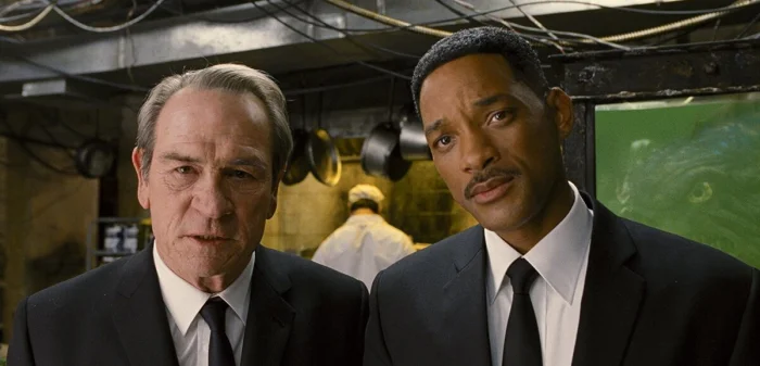 Секретная служба в чёрных костюмах следит за инопланетянами, чтобы мы продолжали жить в незнании и спокойствии. Отсюда родом «нейтрализатор» воспоминаний, кинематографичные насекомые и главный наставник-циник. Лёгкость комедии не отменяет точного экшена — погоня на туннеле и финальная перестрелка с жуком по-прежнему работают.