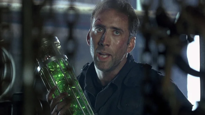 Тюремный самолёт захватывают зеки, а на борту — ветеран, который просто хочет вернуться к семье. Воздух — идеальная клетка: приземляться нельзя, на борту баррикады, а внизу — растерянные диспетчеры. Ник Кейдж с причёской «ветром сдуло» и грандиозная галерея злодеев превращают небо в арену.