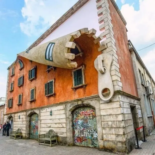 Работа британского скульптора, нарушающая законы гравитации, в Милане, Италия