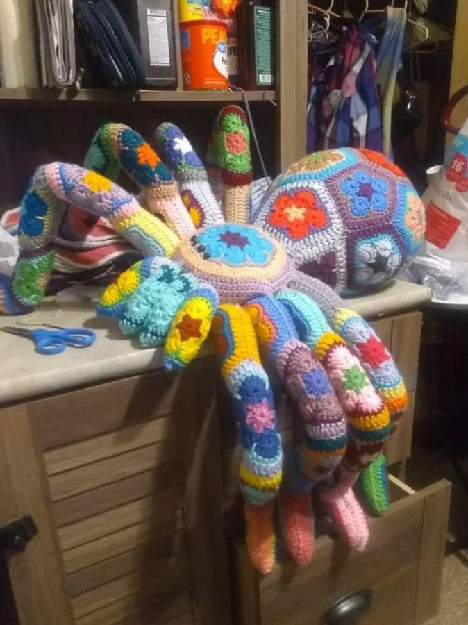Вязаный паук, который не так страшен, благодаря цветам