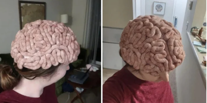 Шапка с юмористическим дизайном, посвященным мозгу