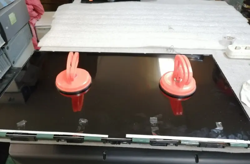 - Вакуумные присоски для стекла! Для телевизоров с диагональю больше 40 дюймов это не рекомендация, а обязательное условие. Пытаться поднять тончайшую стеклянную матрицу руками — почти гарантированный способ ее сломать.