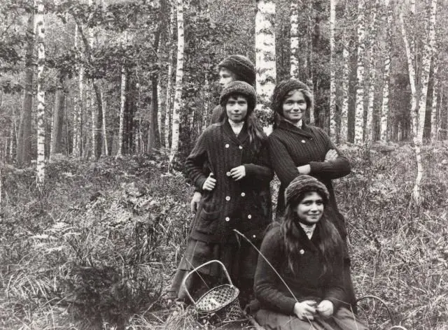 Великие княжны Ольга, Татьяна, Мария и Анастасия в Беловежской пуще. 1913 г.