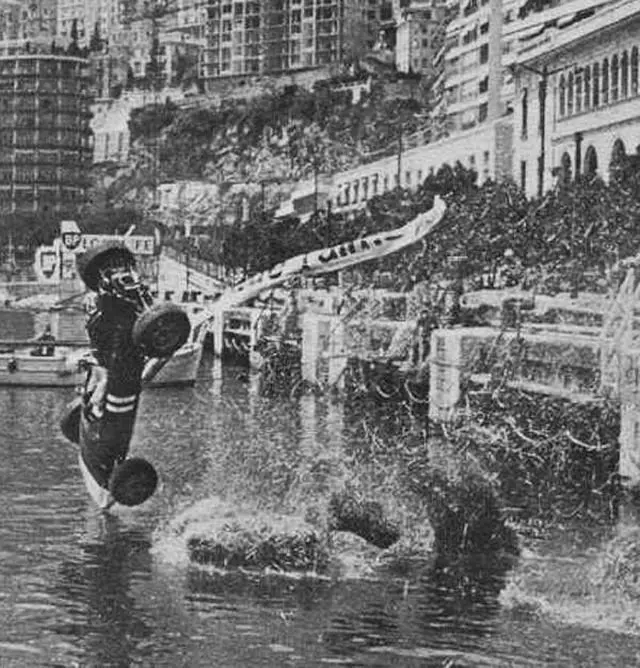 Австралийский пилот Пол Хокинс угодил в море во время Гран-при Формулы-1 в Монако, 1965 год.