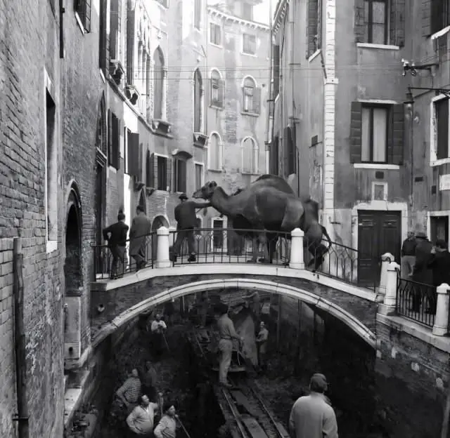 Верблюды участвуют в очистке венецианских каналов. Италия, 1956 год.