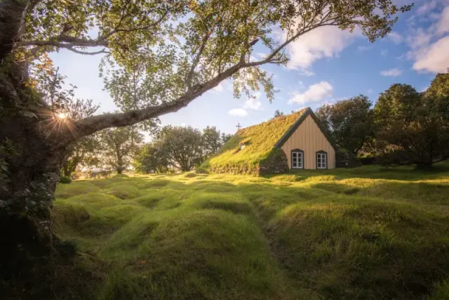 Хофскиркья - 130-летняя церковь в Исландии с крышей из дерна