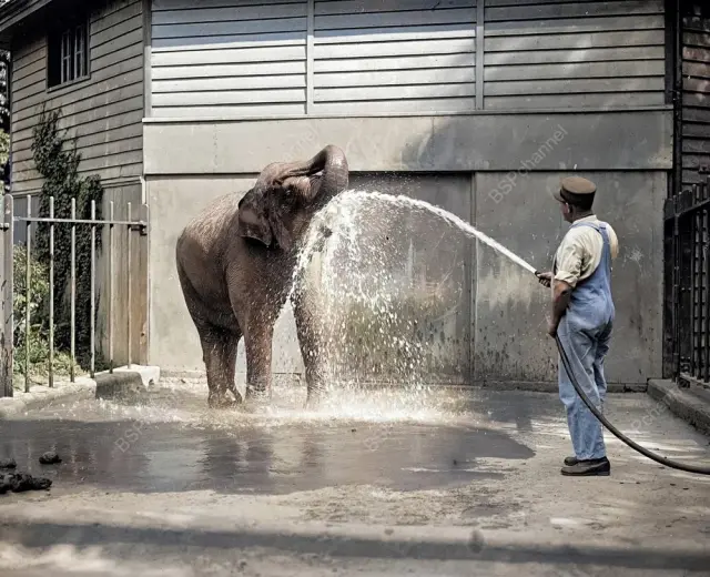 Слон в зоопарке. Вашингтон, округ Колумбия, 1926 год.