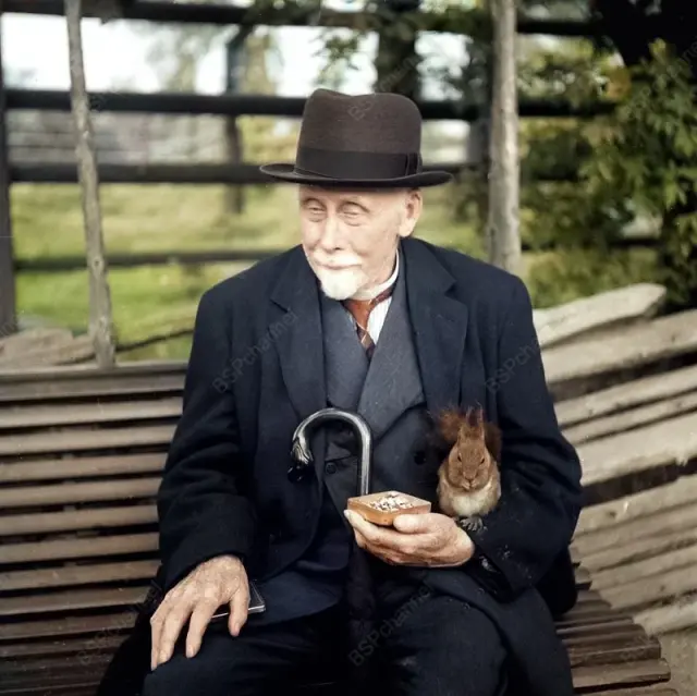 Джентльмен подкармливает белочку. Швеция, 1945 год.