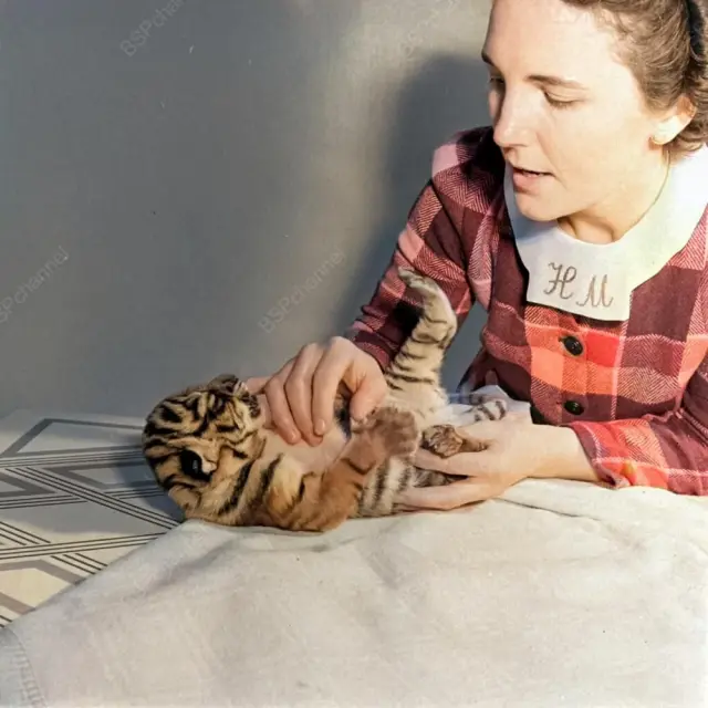 Хелен Мартини, жена смотрителя львов в зоопарке Бронкса, заботится о трех тигрятах после того, как их мать отказалась их кормить, 1944 год.