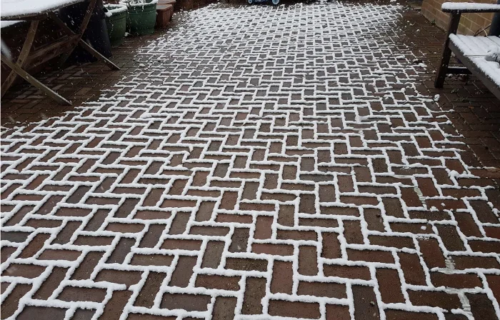 4. Снег, аккуратно осевший только на контуры дорожной плитки