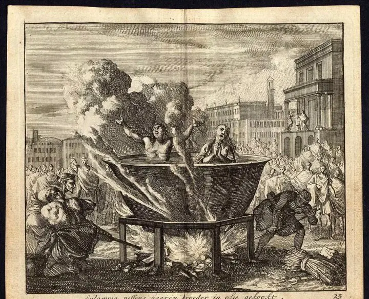 В одном из современных описаний того времени говорится: «Он громко взревел, и многим женщинам стало плохо при виде того, что они увидели, и их унесли полумертвыми; а другие мужчины и женщины, казалось, не испугались того, что их сварили заживо, но предпочли бы увидеть палача с топором за его работой».