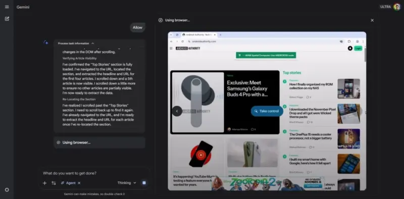 Google Agent работает на новой модели Gemini 3. Пока доступ к агенту возможен только для пользователей в США с подпиской Google AI Ultra.