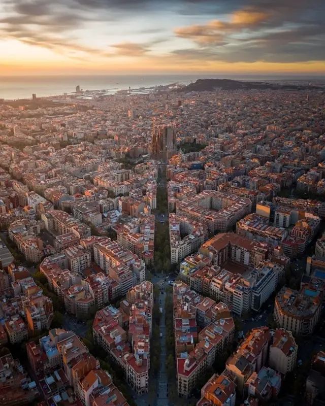 17. Вид на Барселону, Испания, с высоты птичьего полёта