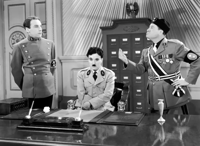 Чарли Чаплин показывает, насколько мощной может быть сатира. Он пародирует фашистских диктаторов, превращая их жесты и амбиции в цирк тщеславия. Прыжки по шторам, игра с надувным глобусом — всё это забавно до момента, когда он говорит в камеру серьёзно. Прямое обращение делает фильм не только смешным, но и исторически важным. Посмотрите на год выхода — это не фильм-осмысление, а кино изнури событий.