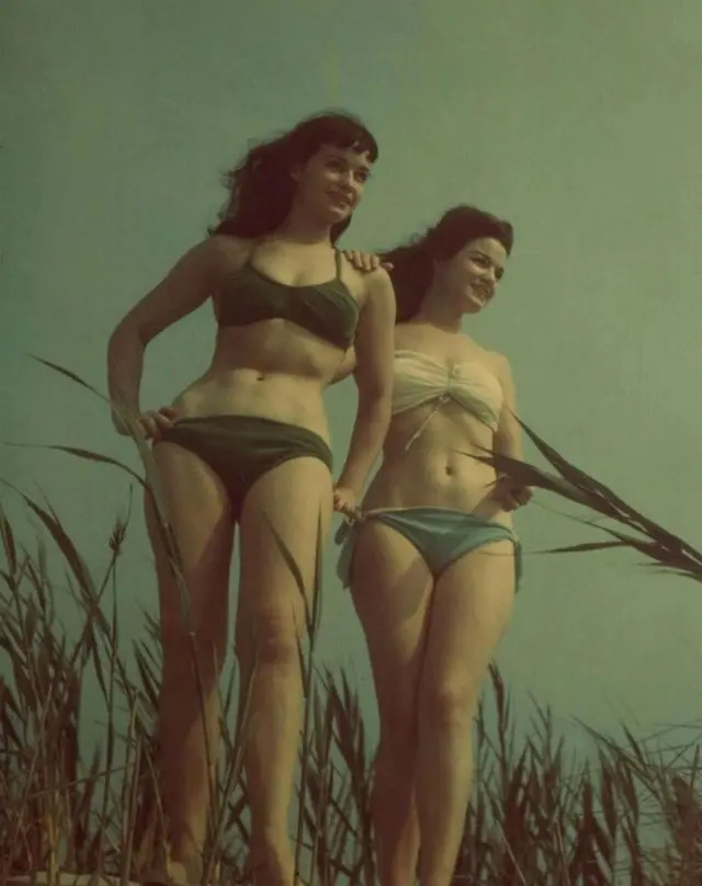 Американская фотомодель Бетти Пейдж с сестрой Голди, 1950-е годы