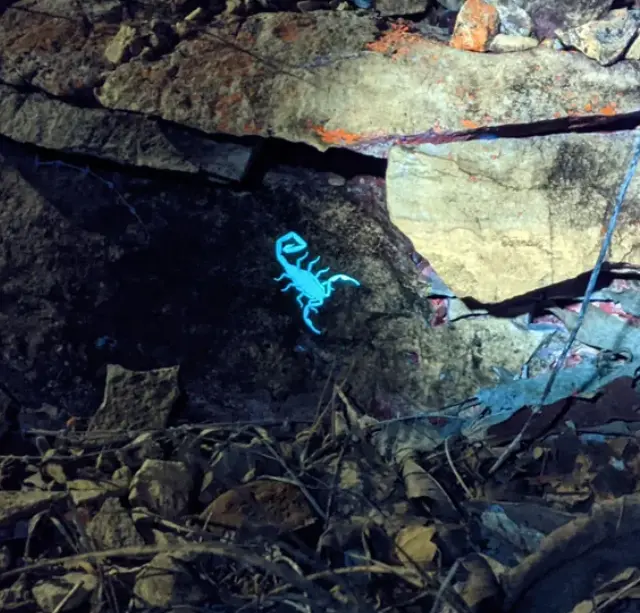 Кутикула скорпиона состоит из нескольких слоёв: внешне расположенный тонкий эпикутикула, средний слой - экзокутикула, и самый толстый внутренний слой - эндокутикула. Ответственность за флуоресценцию лежит на среднем слое, который вместе с эпикутикулой отслаивается во время линьки. В результате в периоды линьки и несколько дней после неё скорпионы не излучают свет. Также отмечается, что яркость их флуоресценции увеличивается с возрастом и укреплением экзоскелета.