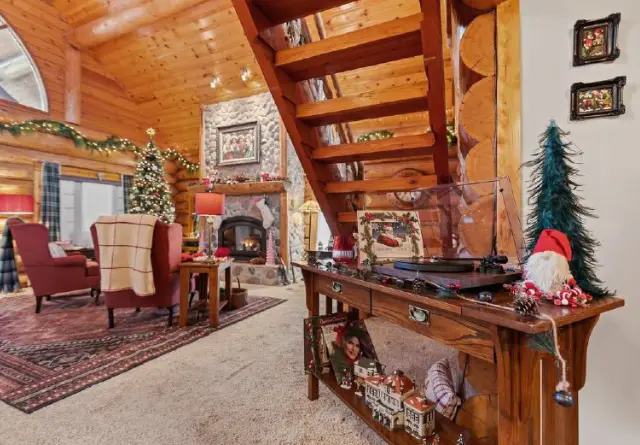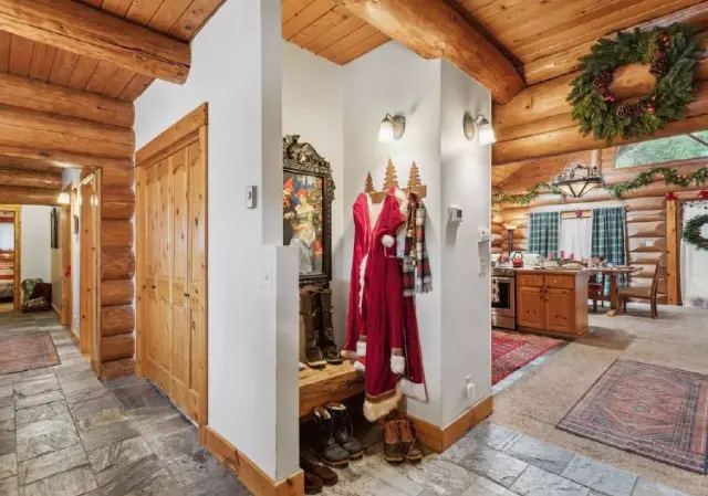 В стоимость входит уютная резиденция площадью 200 квадратных метров, оснащённая двумя спальнями, очагами, праздничными декорациями и стеклами с морозными узорами. Также к вашему распоряжению гараж для саней и стойла для оленей, а в подарок — десять заснеженных гектаров земли.